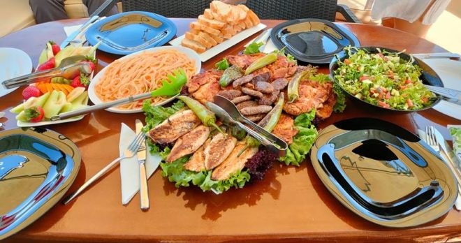 Ujście Rzeki Manavgat (1 Godzina): Pływaj w rzece lub morzu; ciesz się otwartym bufetem z kurczakiem, rybą, klopsikami, makaronem, sałatką i owocami. 🍖