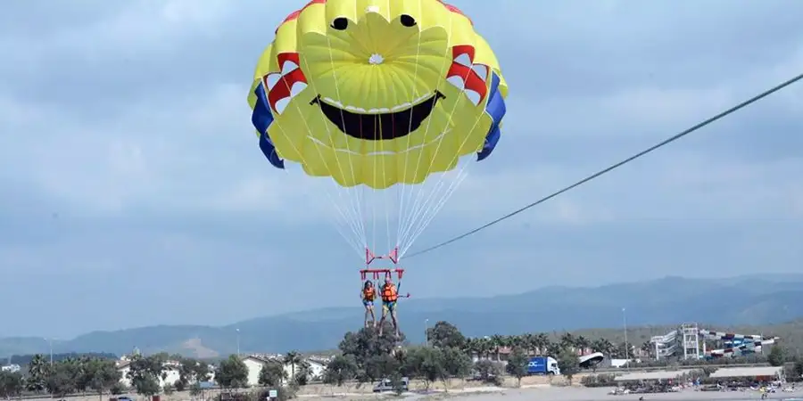 Parasailing: Parasailing to kolejna zabawna aktywność na plażach Side. Parasailing to technicznie użycie spadochronu ciągniętego za potężną motorówką. Możesz wznieść się dziesiątki metrów nad poziom morza i zobaczyć wspaniałe widoki z nieba. Ogromna frajda jak ptak na niebie Side.