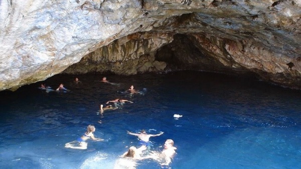 Wejdź do Jaskini Bababurun na przystanek fotograficzny, uchwycając jej unikalne piękno naturalne. Następnie zakotwicz w pobliżu Wodospadu Düden na 30-minutowy przystanek na pływanie w nieskazitelnych zatokach. Pływaj, opalaj się lub karm żółwie morskie, jeśli masz szczęście – czysta harmonia w cudach natury Alanyi! 🐢