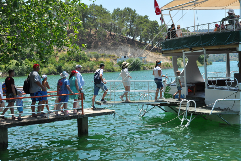Rejs po Zielonym Jeziorze w Zielonym Kanionie, spokojnym przystanku na tej wycieczce Side, z kąpielą w turkusowych wodach. Delektuj się obiadem nad jeziorem z kurczakiem, ryżem, makaronem i sałatką, wzmacniając relaksujący urok tej przygodowej wycieczki Side.