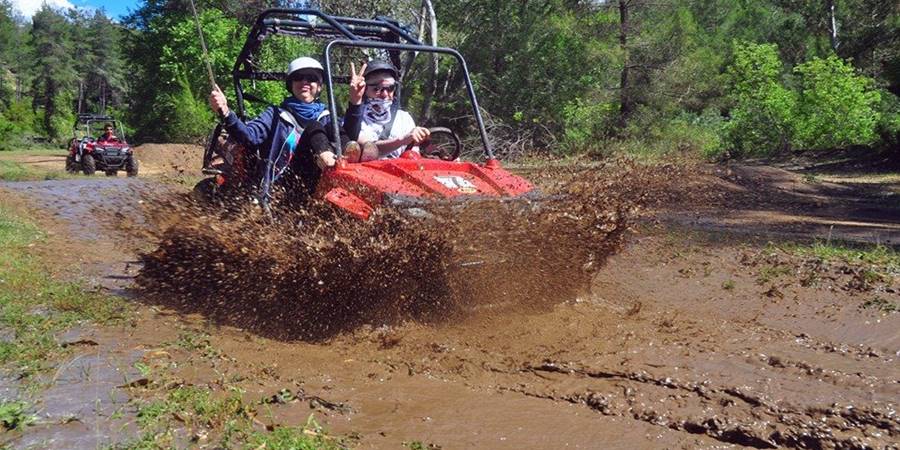 Twoja Kemer Rafting Jeep i Buggy Safari Tour rozpoczyna się komfortowym, klimatyzowanym transferem autobusem z hotelu w Kemer, Göynük lub Beldibi. Ciesz się około godzinną malowniczą jazdą do Parku Narodowego Kanionu Köprülü, mijając gaje cytrusowe i szczyty gór Taurus, przybywając pełen energii na przygodę.