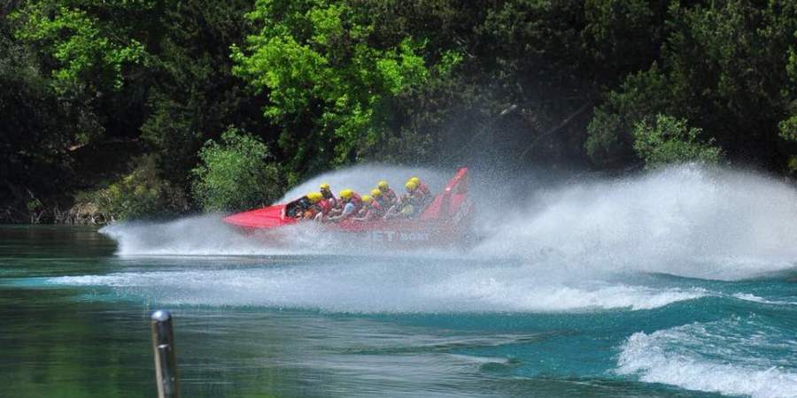 Łódź motorowa (szybka jazda): Ścigaj się przez kaniony z rozpryskami i widokami (kaski/kamizelki ratunkowe zapewnione). 🚤