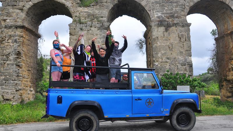 Przemierzaj błotniste szlaki, przeprawy przez rzeki i wzgórza w konwoju, z walkami wodnymi przy użyciu dostarczonych plastikowych butelek dla śmiechu! Zatrzymaj się na zdjęcia przy 1800-letnim Moście Naras i rzymskich akweduktach, prowadzony przez profesjonalistów dzielących się historią Anatolii. Najważniejszy punkt wycieczek w Side! 📸