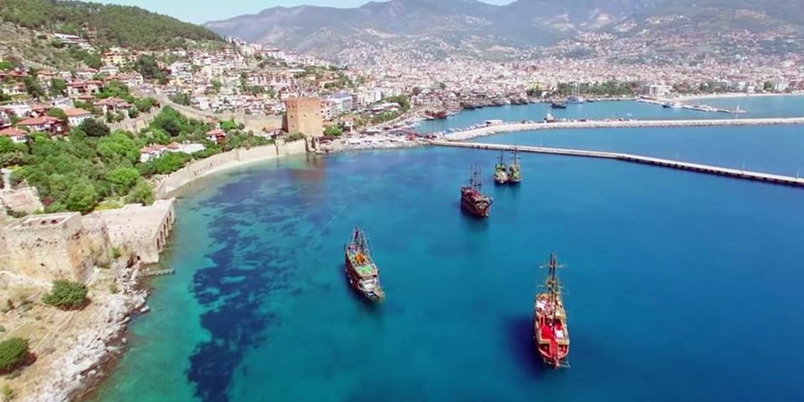 2. Wycieczka Łodzią (1 Godzina): Żegluj wzdłuż wybrzeża Alanyi, podziwiając Zamek Alanya, Czerwoną Wieżę i Plażę Kleopatry. 🛥️