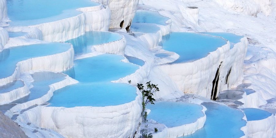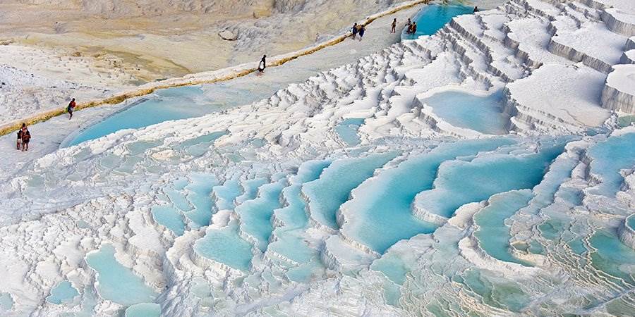 Pamukkale (3 godziny): Odkrywaj białe tarasy trawertynowe, zanurz się w Basenie Kleopatry (37°C wody termalne) i odkrywaj starożytne miasto Hierapolis. 🏛️